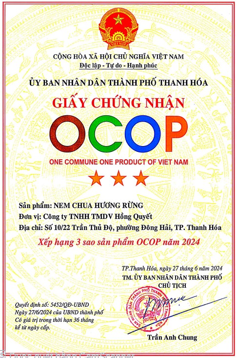 Nem cối Hương Rừng là biến tấu đặc sắc của nem chua xứ Thanh, được gói thành từng cối to, dày thịt, giữ trọn hương vị tự nhiên của thịt heo tươi, bì giòn và thính rang vàng thơm phức. Khi mở lớp lá chuối xanh, hương nem lan tỏa – vị chua nhẹ, cay dịu, xen chút ngọt béo của thịt tạo nên hương vị “gây thương nhớ” cho bất kỳ ai từng thưởng thức.