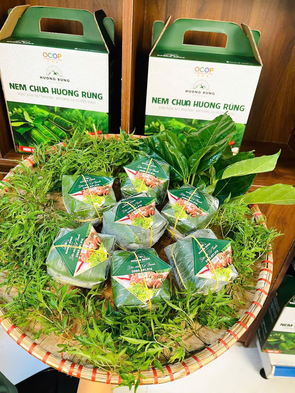 Nem chua Hương Rừng được làm thủ công theo công thức gia truyền, kết hợp tinh tế giữa thịt heo tươi, bì giòn, tỏi ớt và lá đinh lăng. Mỗi chiếc nem mang hương vị đặc trưng chua nhẹ – cay nồng – thơm dịu, giúp thực khách cảm nhận trọn vẹn tinh hoa ẩm thực Thanh Hóa.