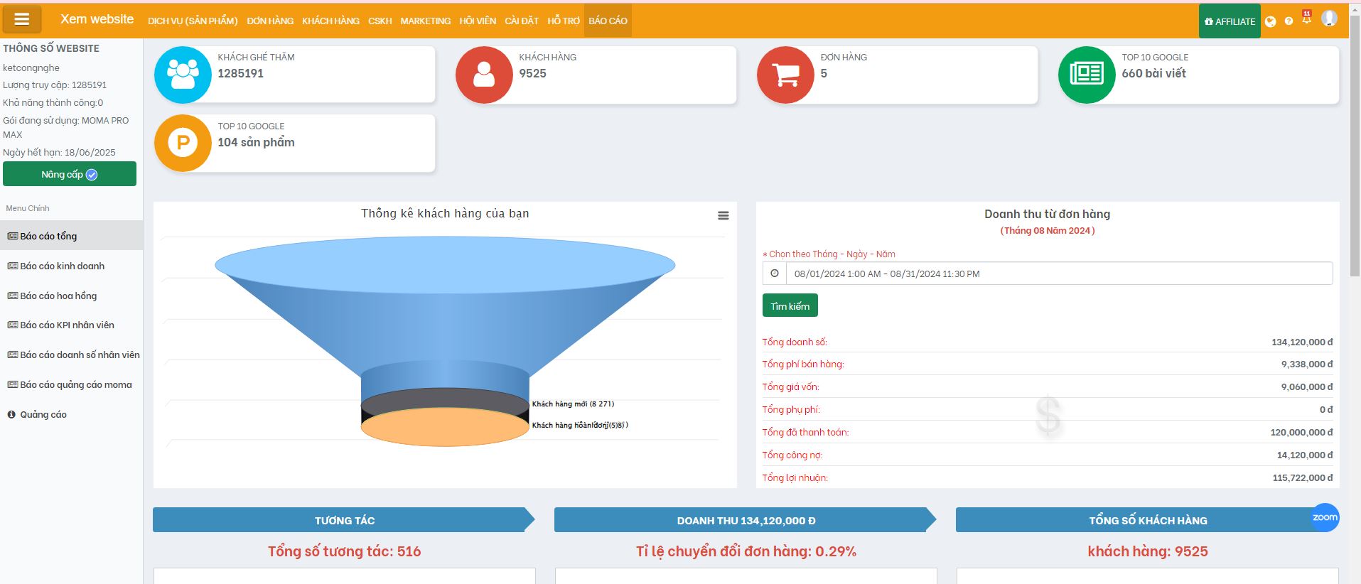 BÁO CÁO HOA HỒNG CHO CỘNG TÁC VIÊN NẾU DÙNG MOMA LÀM KÊNH AFFILAITE