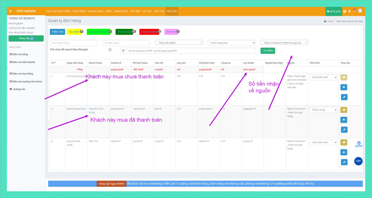 BƯỚC 3: NHẬN TIỀN VÀ ĐỐI SOÁT SẢN PHẨM BÁN MOMA