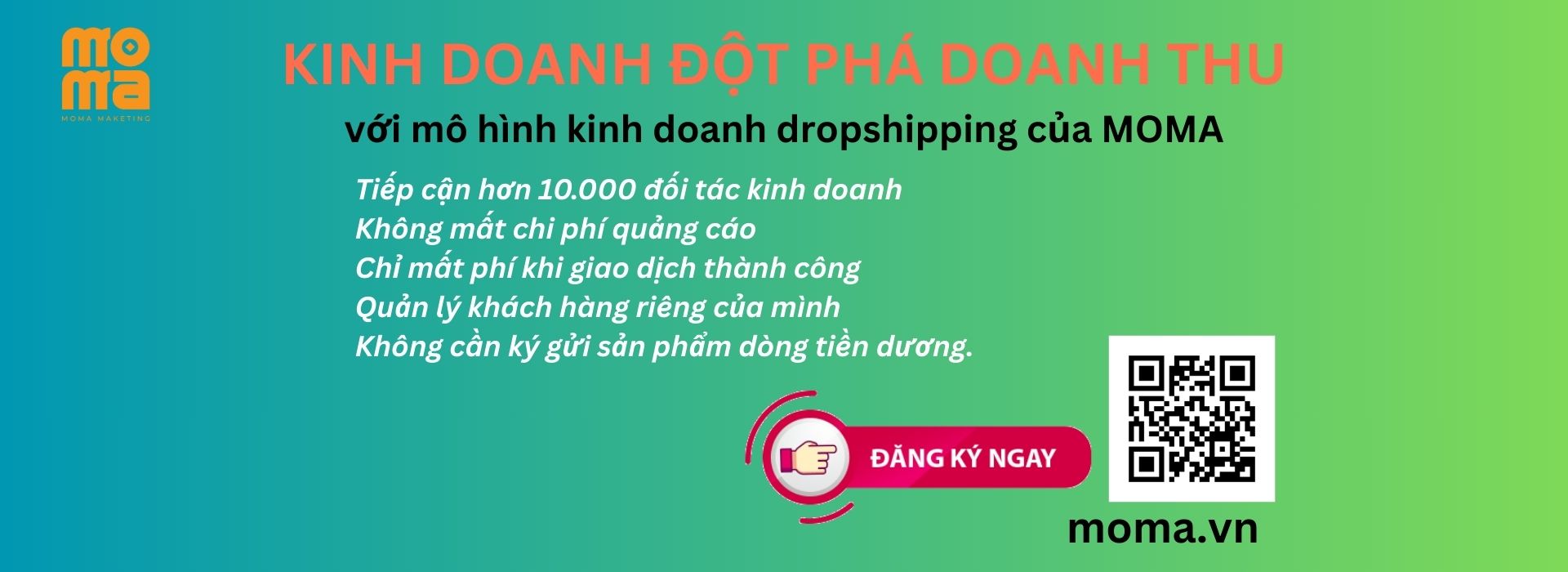 MOMA là nền tảng cung cấp nguồn hàng từ nhà sản xuất đến với người có nhu cầu bán hàng mà không cần bỏ vốn. trong đó doanh nghiệp chỉ trả hoa hồng cho các đối tác thuộc mạng lưới Affiliate (tức ctv) khi có đơn hàng hoặc chuyển đổi thành công