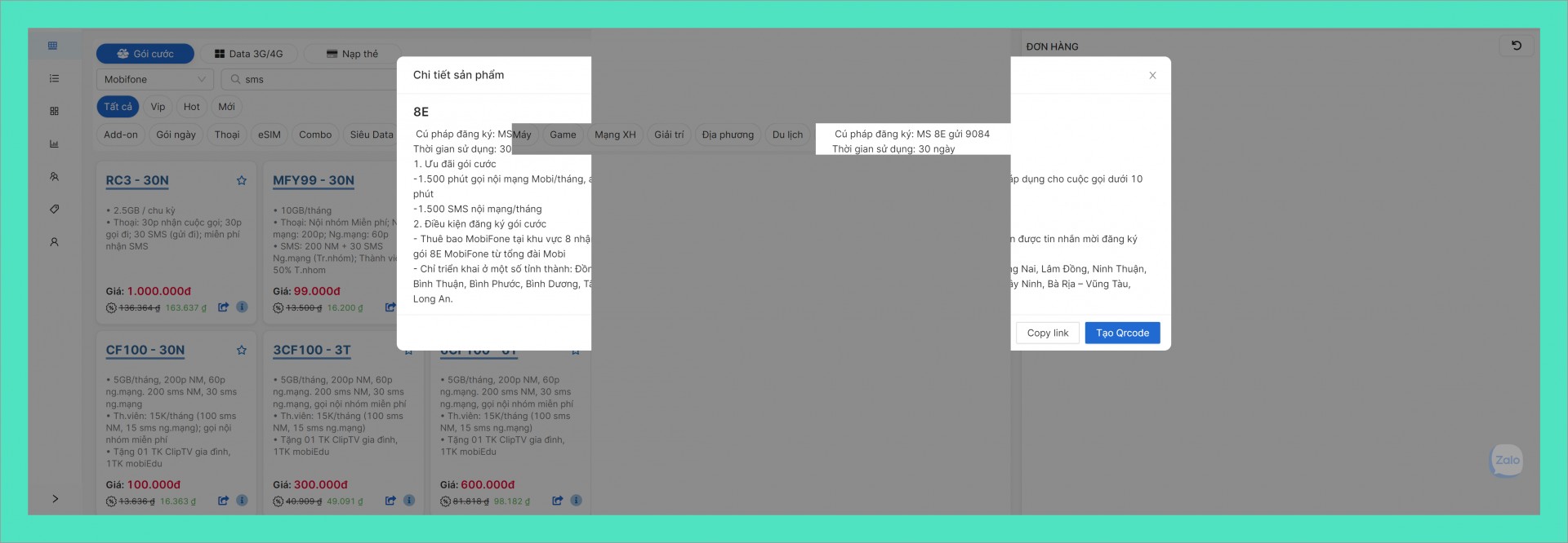 Nội dung CK _ SĐT_ dịch vụ đăng ký
