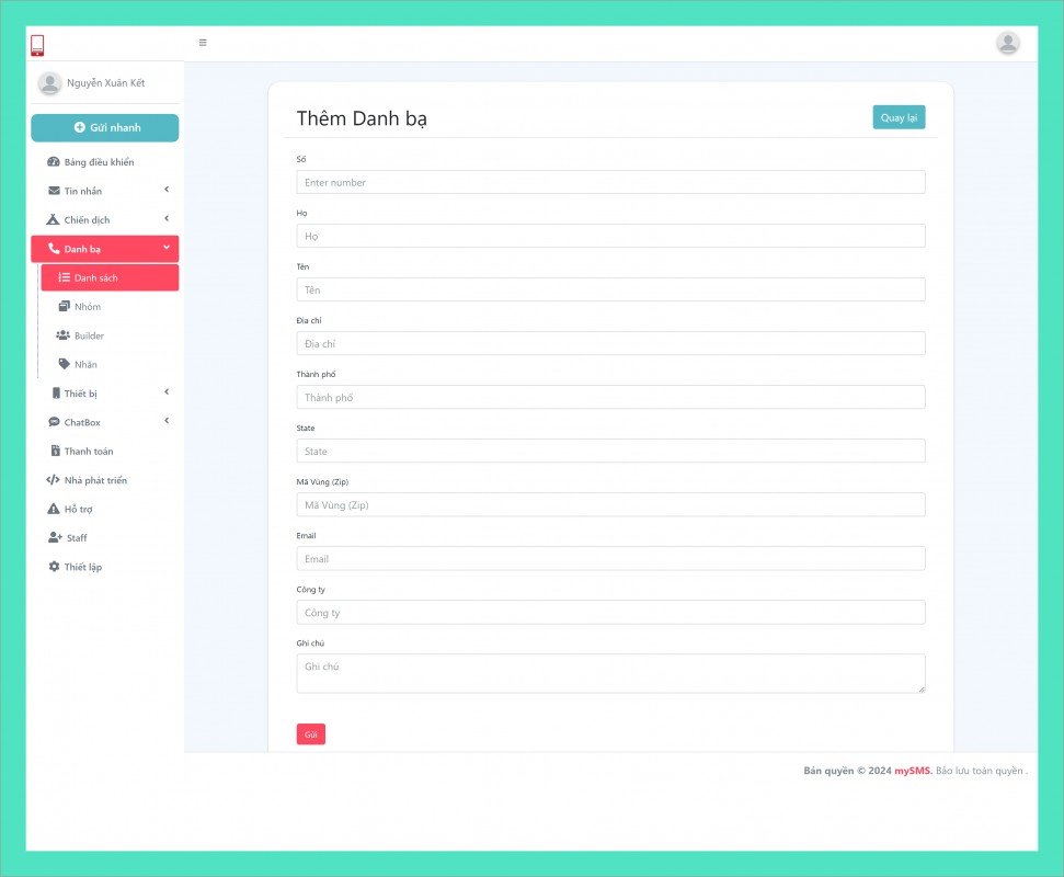 - website: Truy cập đường link : https://mysms.vn/login