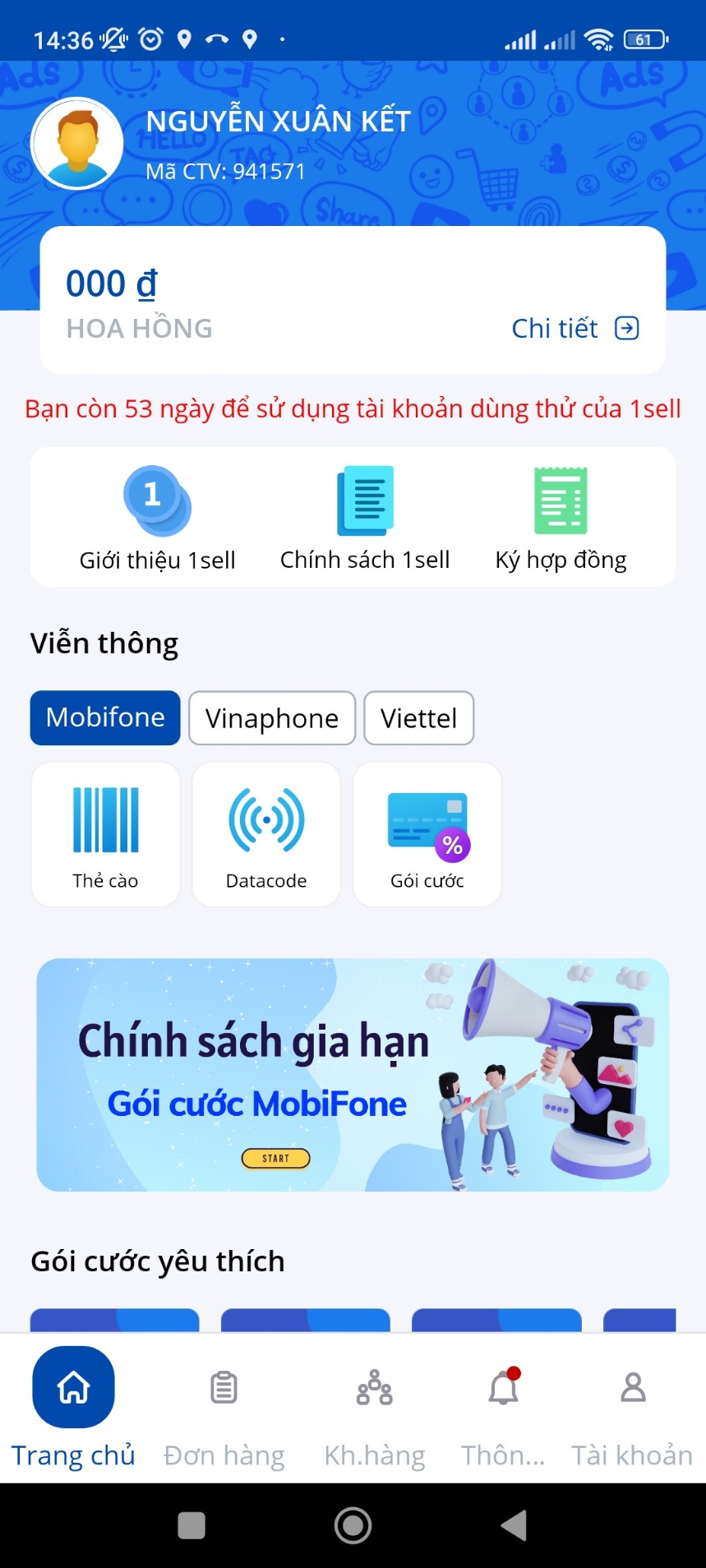 - Khách bạn mua gói cước nhưng người ta không thích tự thanh toán mua qua bạn bạn dùng tiền trong app mua